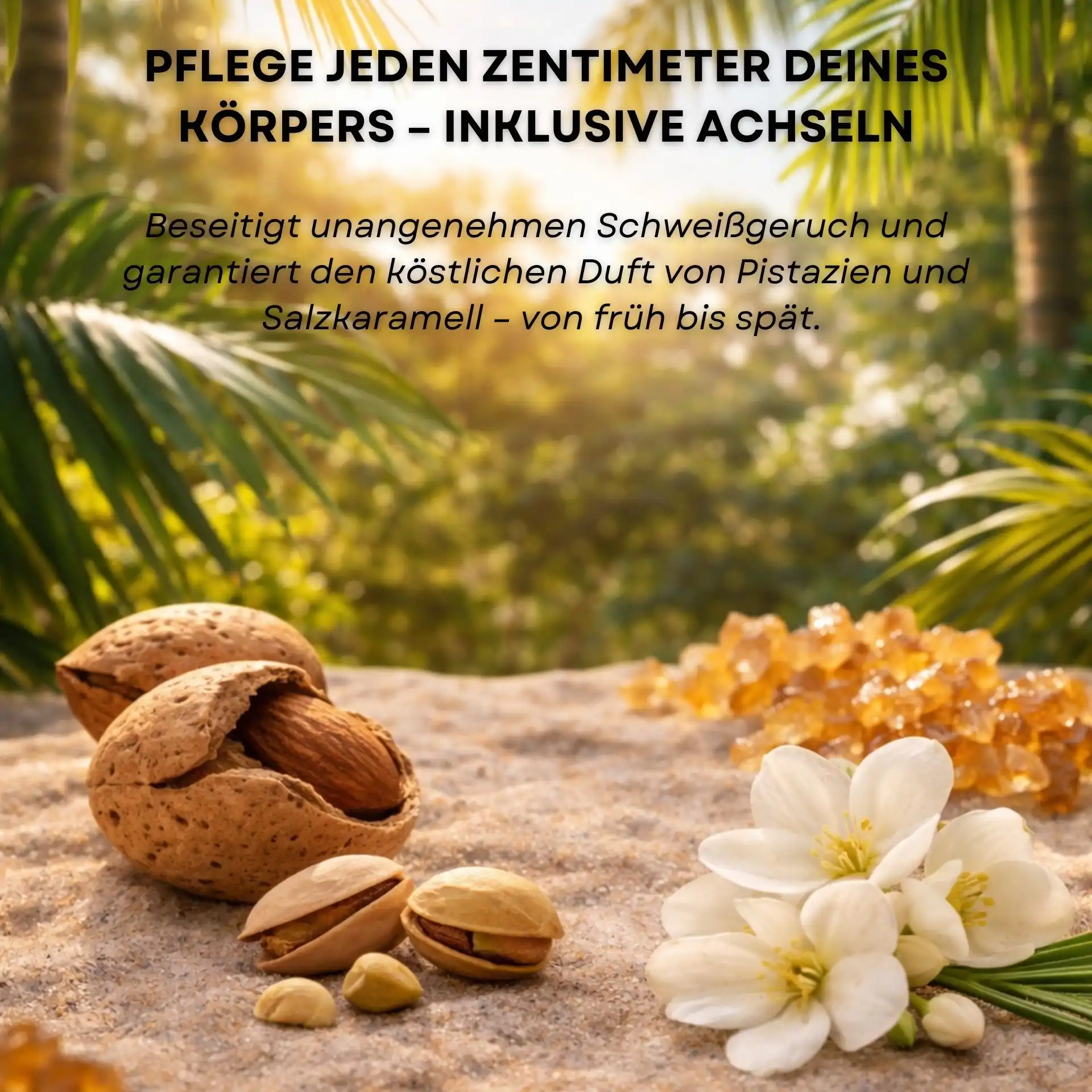 Pistachio Sunset verbindet wirksamen Schutz mit einem sinnlichen Dufterlebnis. Die Deocreme schmilzt sanft auf der Haut, pflegt intensiv und sorgt für ein langanhaltendes, frisches Hautgefühl.